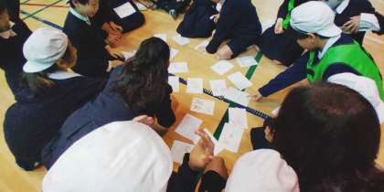 今回の児童集会は、給食にまつわるカルタをしました。