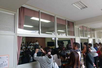 学習参観、作品展も兼ねておりましたので、たくさんの保護者の方に来ていただきました。教室に入ることが出来ず、廊下から授業の様子を見ておられる方もおられました。子どもたちのうれしそうな笑顔が印象的でした。