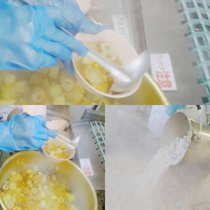 「きゅうりの梅風味」は 、焼き物機で蒸したきゅうりに、梅肉、砂糖、米酢、う