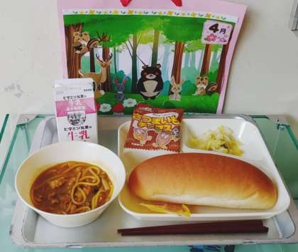 カレースープスパゲッティ キャベツのピクルス おさつチップス