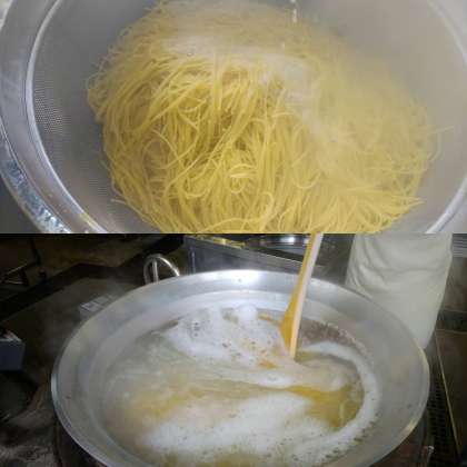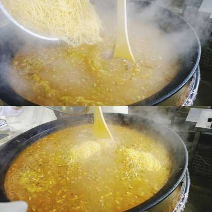 「カレースープスパゲッティ」は、鶏肉とベーコンを主材にしたカレー味のスープスパ ゲッティです。