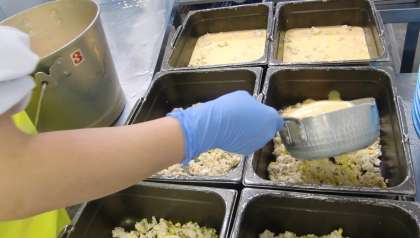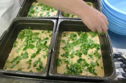 2・・卵とだし汁を合わせ、具とともにミニバットに入れ、三つ葉をち