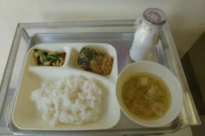 今回の献立は、平成26年度学校給食献立コンクール優秀賞の献立です。献立のねらいは「魚の消費量が減っていると聞いたので、脂ののりきった旬のさばを食べてもらいたいと思いました。魚のくささが苦手な人のためにカレー風味にしました。」となっています。