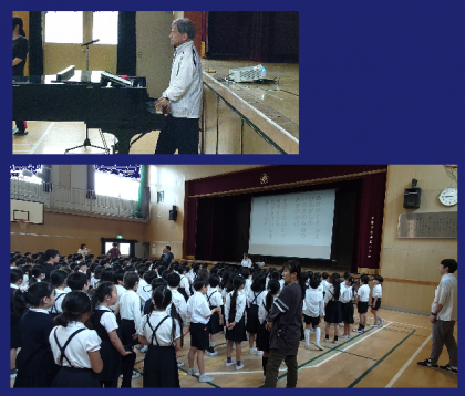 5月23日、講堂で、今年度初めての音楽集会を行いました。