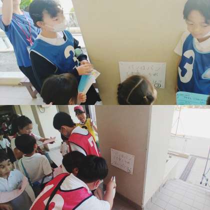1・6年生が校内にあるクイズを探してゲームをしました。