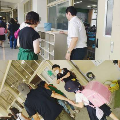 1人ずつ確認しながら児童を引き渡しました。保護者の方も、スムーズに対応してくれました。いつ起こるか分からないのが災害です。いざという時に慌てないで、冷静な行動がとれるように行いました。