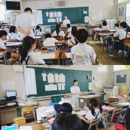 おやつは1日3回の食事で不足しがちな栄養素を補うために食べることを学びました。どんなおやつが理想的なのかを考えてました。普段食べているスナック菓子やジュースには、エネルギーや砂糖・油(脂肪)・塩分が多く含まれていることを知りました。