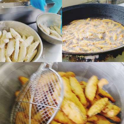 「サーモンフライ」は、冷凍のまま170のなたね油であげます。