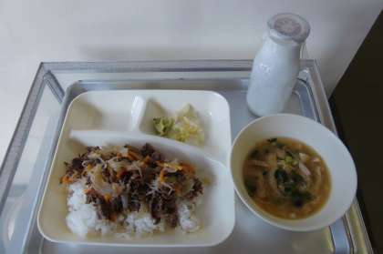 牛丼・みそ汁・はくさいのゆず風味・牛乳