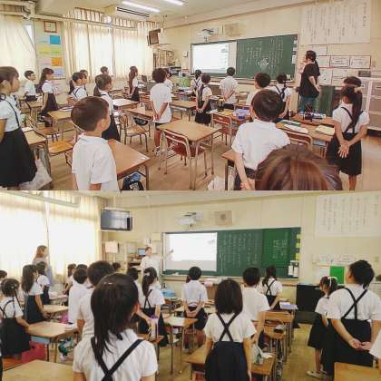 始業式では、校長先生からは夏休みの出来事のお話がありました。2学期はたくさんの行事があります。実りある学期にしたいです。最後に全校で校歌を歌いました。学校中にきれいな歌声響きました。学級では、夏休みの宿題を集めたり係を決めたり掃除をしました。