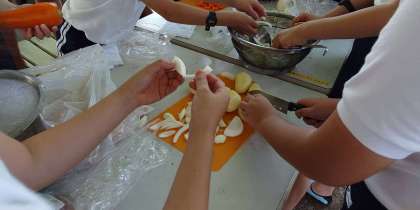 野外炊さん(カレー作り)の様子です。