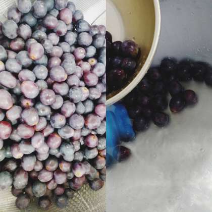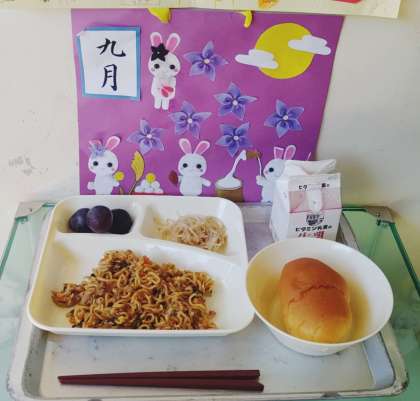 オイスターソース焼きそば・もやしのしょうがづけ・ぶとう巨峰