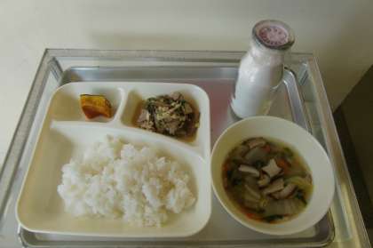 今日は冬至です。給食にはかぼちゃ(なんきん)が登場しています。