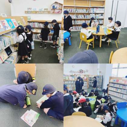図書館の使い方を教えてもらいました。本を自由に読んだり、本を探したりしました。