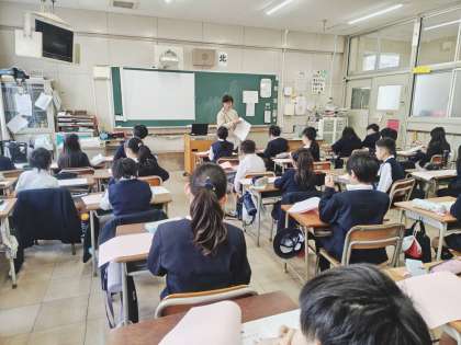 教室では、冬休みの過ごし方についてお話がありました。冬休みの宿題をもらいました。