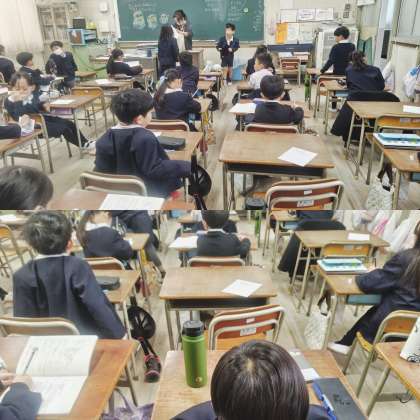 休み明けの中で元気に歌いました。教室では、先生からのお話があり宿題を集めたり目標を書いたりしました。