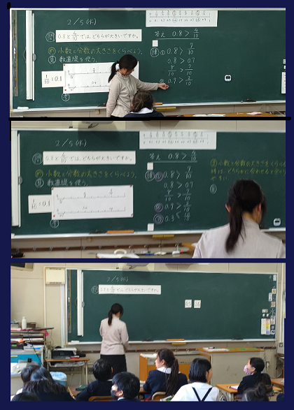 5時間目に、3年1組で小数と分数の大きさを比べました。