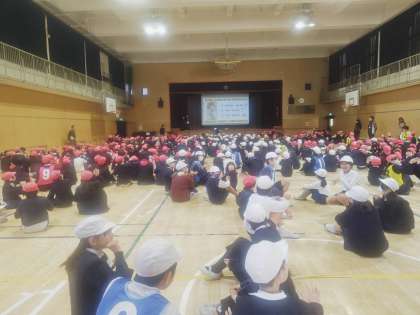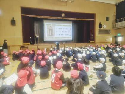AI加工された先生の写真を見て誰なのかクイズです。3択クイズで、1番は「うさぎ」2番は「猫」3番は「とり」のポーズをします。元気グループで相談して決めます。AI加工はとても難しく盛り上がりました。