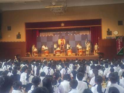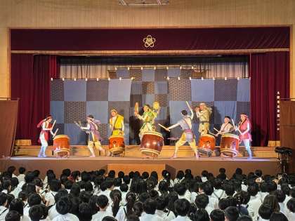 文化庁学校巡回公演により「太鼓と芝居のたまっ子座」のみなさんに全校児童に公演をしていただきました。