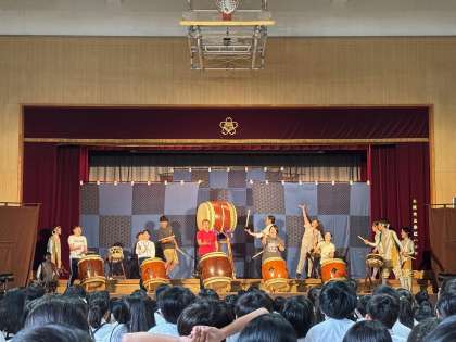 実際に太鼓を叩く体験をしました。大きな太鼓の音に感動しました。太鼓の迫力と楽器の音だけのお芝居に感動しました。