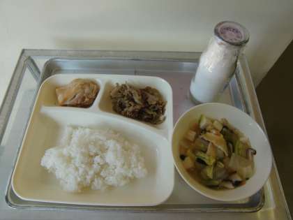 鶏肉のしょうゆバター焼き・五目汁・きんぴらごぼう・ご飯・牛乳