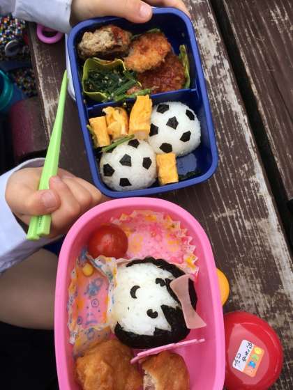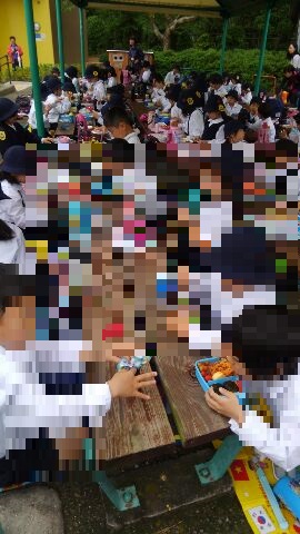 これから待ちに待ったお弁当の時間です。カラフルなお弁当を美味しそうに食べています。(11時45分現在)