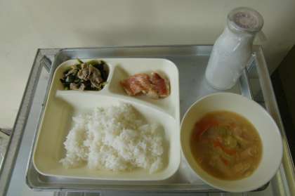 赤魚のしょうゆだれかけ・みそ汁・こまつなの煮びたし・ごはん・牛乳