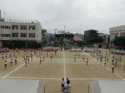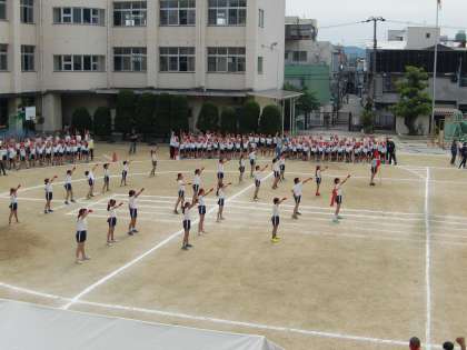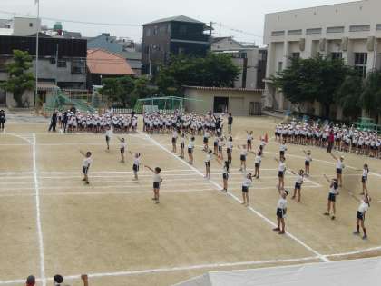 今回、応援団と全校児童合わせての練習となりました。本番さながらで、迫力満点です。