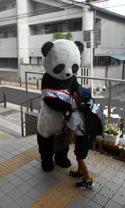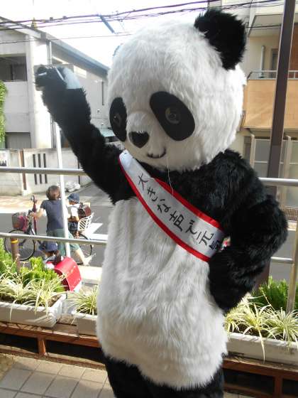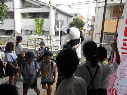 あいさつ強調週間最後の本日、かっくんに続きたえちゃんも「あいさつ大使」として来てくれました。