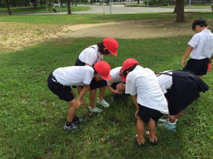 「咲くやこのはな館」の入場を待つ間、広場で遊んでいます。