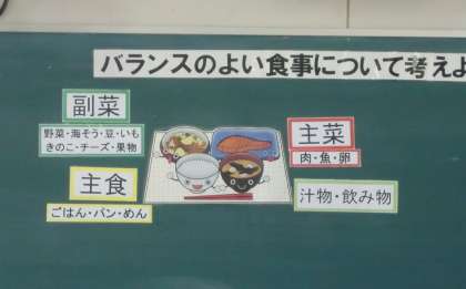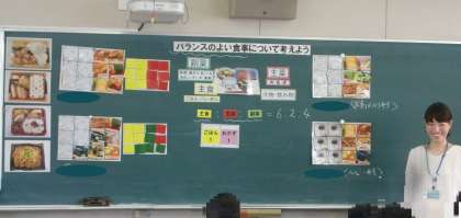 本日、6年生は東成区の栄養教諭に来ていただき「バランスのよい食事について考えよう」のテーマで栄養学習が行われました。
