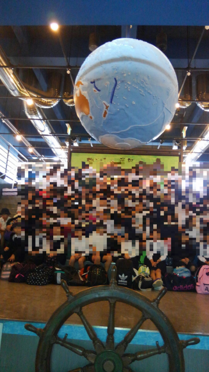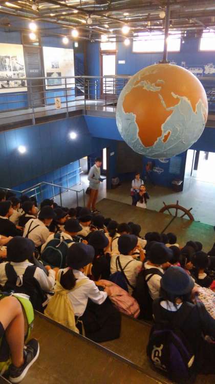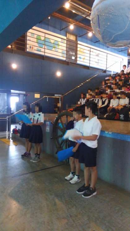 海洋センターに到着し、早速入所式を行いました。(10時20分現在)
