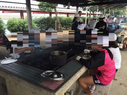 薪で火を熾し、ご飯を炊きました。カレーも野菜を切るところから、すべて自分たちで作りました。とても美味しく出来きました。早速いただきます。(12時18分現在)