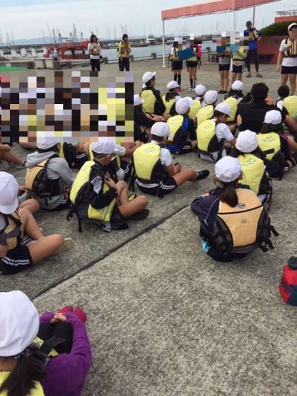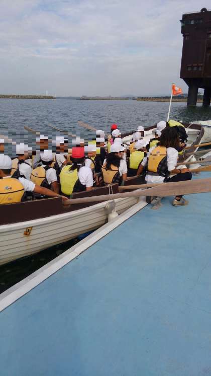 クラスごとにカッターに乗り込みました。(14時46分現在)