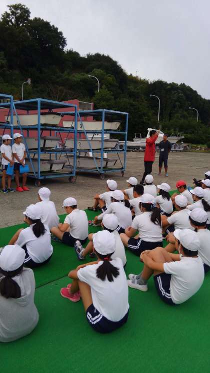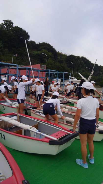 説明を聞きながら、ヨットを組み立てていきます。(9時35分現在)