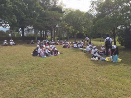 楽しいお弁当タイムも終わり、広々とした場所で虫取りやおにごっこなど、思い思いに楽しんでいます。(12時50分現在)