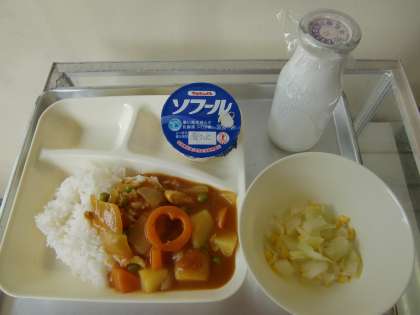 チキンカレーライス・キャベツとコーンのサラダ・ヨーグルト・牛乳