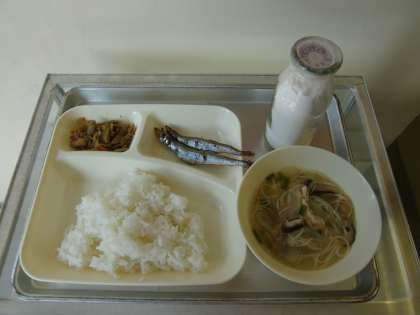 焼きししゃも・にゅうめん・きんぴらごぼう・ご飯・牛乳です。