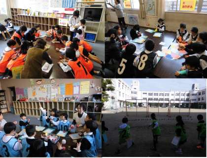 本日、地域の方に来ていただき、1年生に昔の遊びを教えてくださいました。