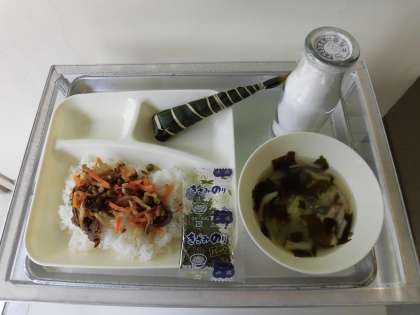 5月5日のこどもの日に、「子どもが元気で大きくなりますように」という願いをこめて、ちまきを取り入れた献立をこどもの日の行事献立としています。ちまきは米の粉などで作ったもちを笹の葉にくるんでむして作ります。