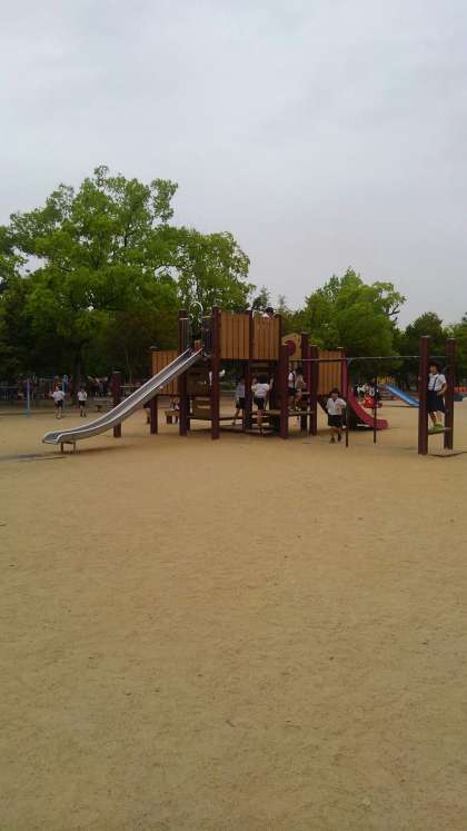 今、雨がやんでいます。その間に、公園で遊びます。