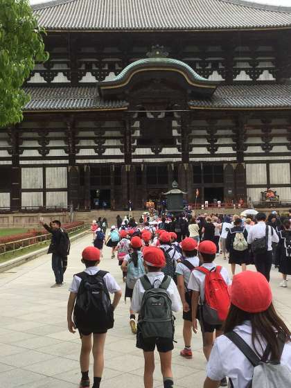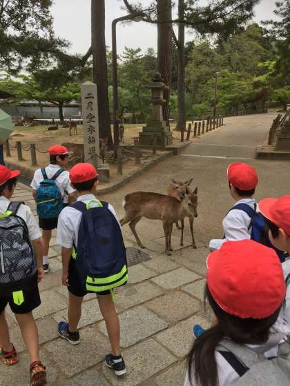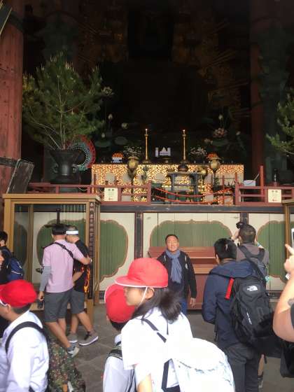 お弁当の後、大仏殿へ移動しました。途中で見かけた鹿には、みんな大興奮!