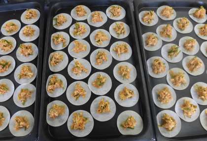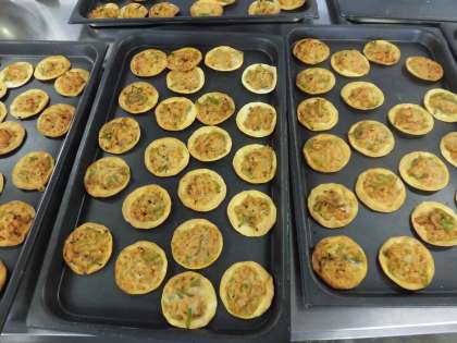 今日の給食の変わりピザはギョーザの皮を台にしています。