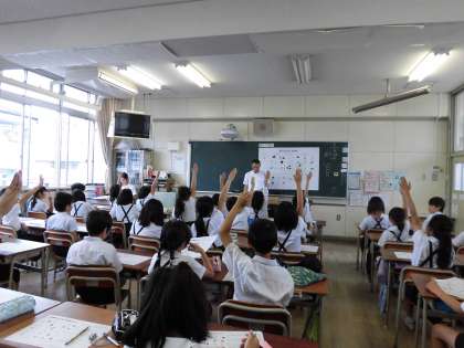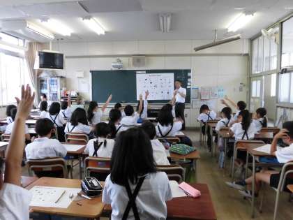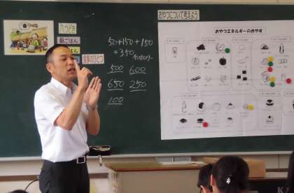 本日、4年生は東成区の栄養教諭に来ていただき「おやつについて考えよう」のテーマで栄養学習が行われました。