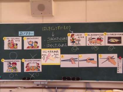 本日、4年生は東成区の栄養教諭に来ていただき「おはしのただしいもちかた」のテーマで栄養学習が行われました。