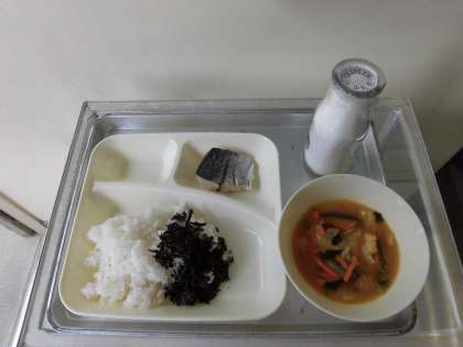 さごしの塩焼き・みそ汁・牛ひじきそぼろ・ご飯・牛乳です。