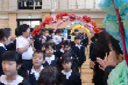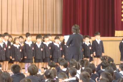 待機していた2年生から6年生が、1年生の入場を拍手で温かく迎えました。