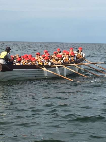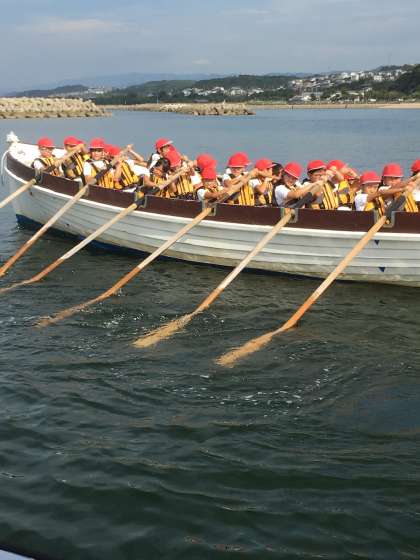みんなで息を合わせて、タイミングよく櫂を漕ぐのは、とても難しいです。
