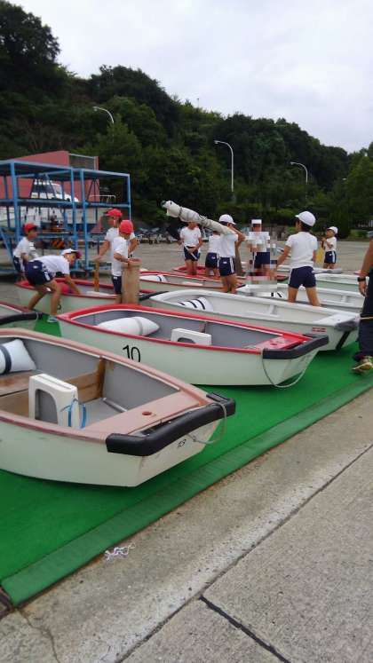 自分たちで、ヨットの準備をし、説明を聞いたあと、海へと出発です。(9時46分現在)
