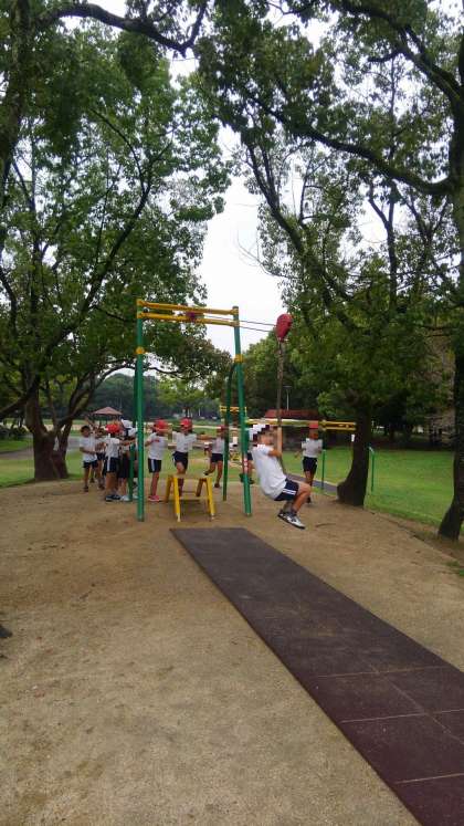 昨日までの雨の影響が心配されましたが、無事に到着しみんな早速公園で遊んでいます。